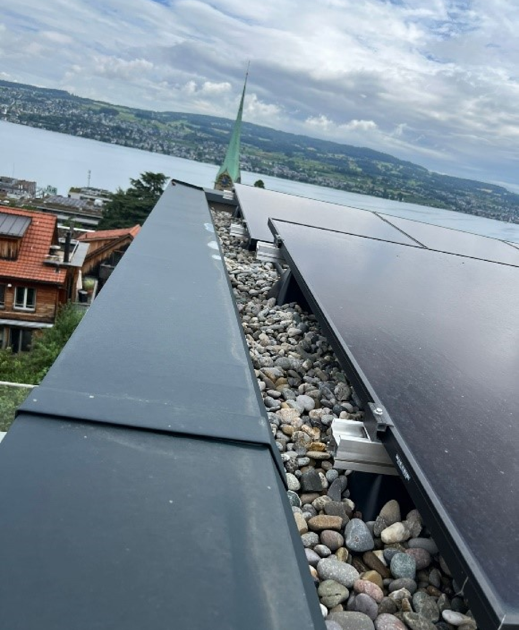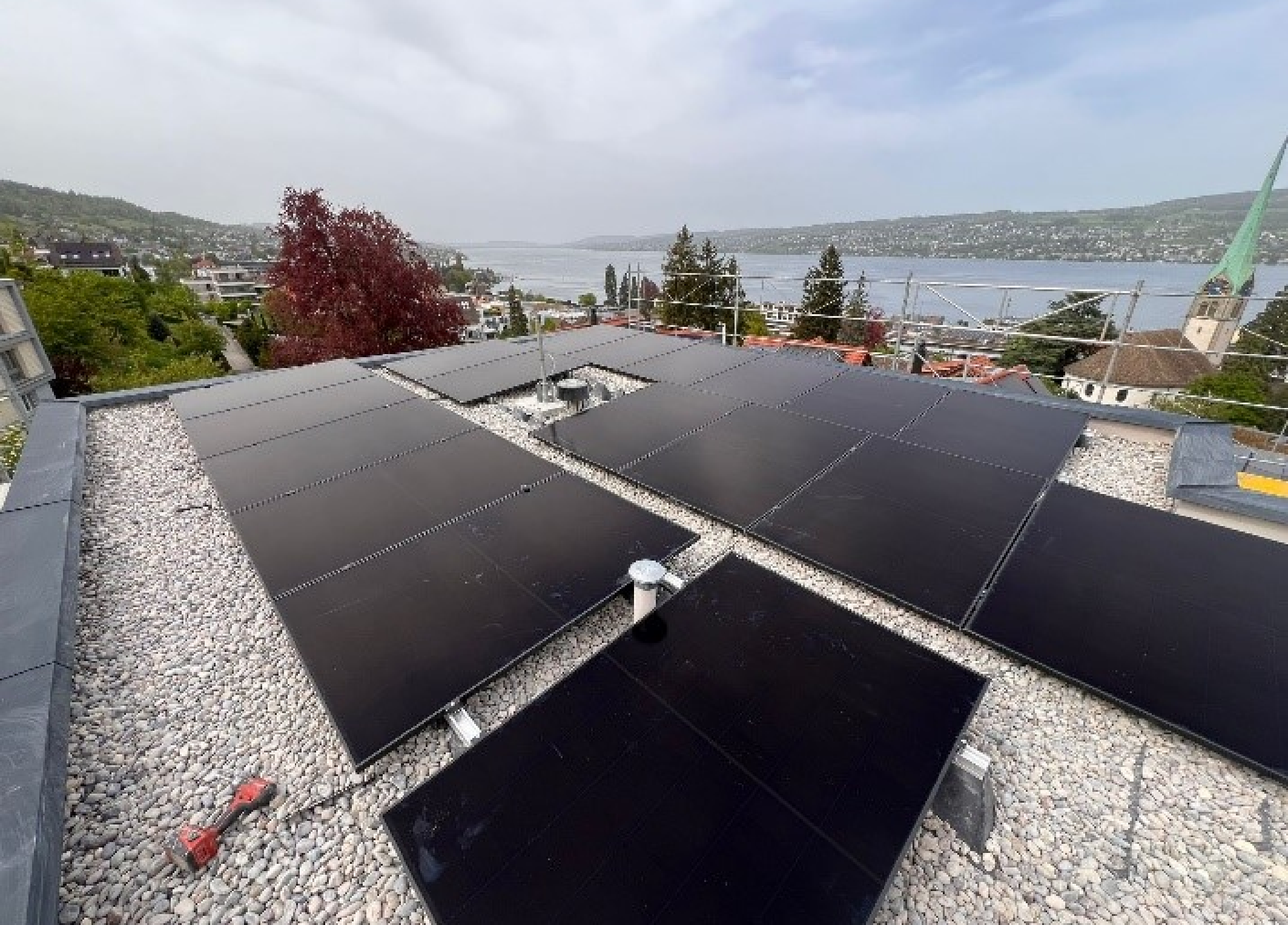 Am Kamblisteig in Horgen wurde eine Schrägdach-Photovoltaikanlage mit 18 Solarmodulen und einer Gesamtleistung von 8,46 kWP installiert. Die Solarmodule des Typs Aiko Solar 445 wurden optimal auf die Dachneigung abgestimmt, um eine hohe Energieeffizienz zu gewährleisten. Die Energieumwandlung erfolgt über einen SMA STP8.0-3SE-40 Wechselrichter, der eine stabile Stromversorgung sicherstellt. Dieses Projekt zeigt, wie selbst kleinere Photovoltaikanlagen einen wichtigen Beitrag zur Energiewende leisten können. 2023 Privatkunde, Horgen Planung und Installation der Schrägdachanlage Solarmodule: Aiko Solar 445 Diese Schrägdachanlage wurde speziell für die Anforderungen eines Privathaushalts konzipiert. Die Installation der 18 Solarmodule sorgt für eine maximale Ausnutzung der Dachfläche und bietet eine nachhaltige Energieversorgung, die den Eigenverbrauch erhöht und die Abhängigkeit vom Stromnetz reduziert. Der Wechselrichter von SMA garantiert eine reibungslose und effiziente Umwandlung des erzeugten Solarstroms. In Kombination mit den Aiko Solar-Modulen wird eine hohe Leistung auch bei suboptimalen Wetterbedingungen sichergestellt. Trotz der vergleichsweise kleinen Größe ist diese Anlage ein beeindruckendes Beispiel dafür, wie private Haushalte aktiv zur Energiewende beitragen können. Mit einer Leistung von 8,46 kWP bietet sie dem Kunden langfristige Vorteile in Form von geringeren Energiekosten und einem reduzierten CO₂-Fußabdruck. Photovoltaikanlage Kamblisteig, Horgen